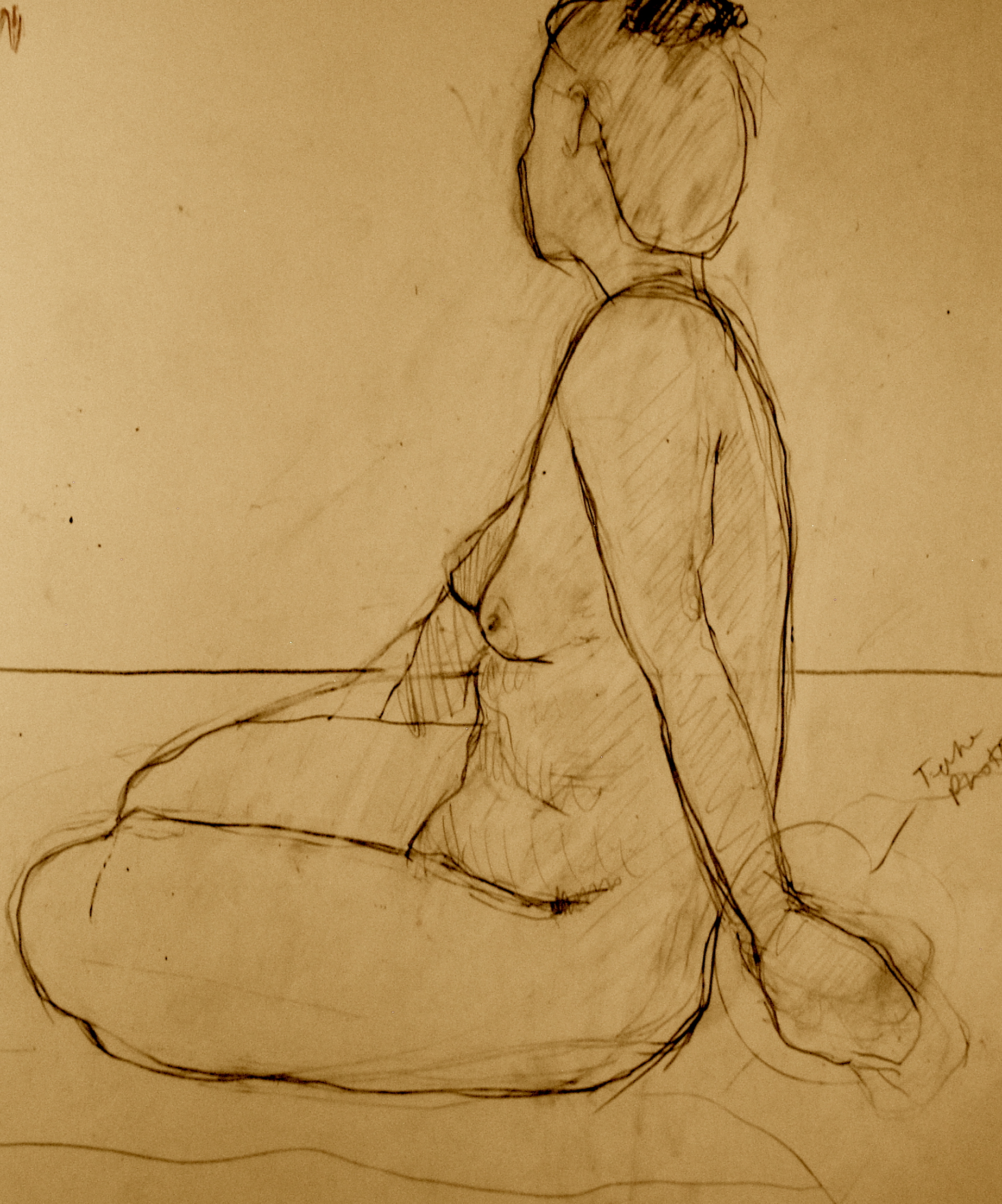 Seated Nude with Legs to Side, 10 mins, graphite on toned paper, 24″ x 24′ $150