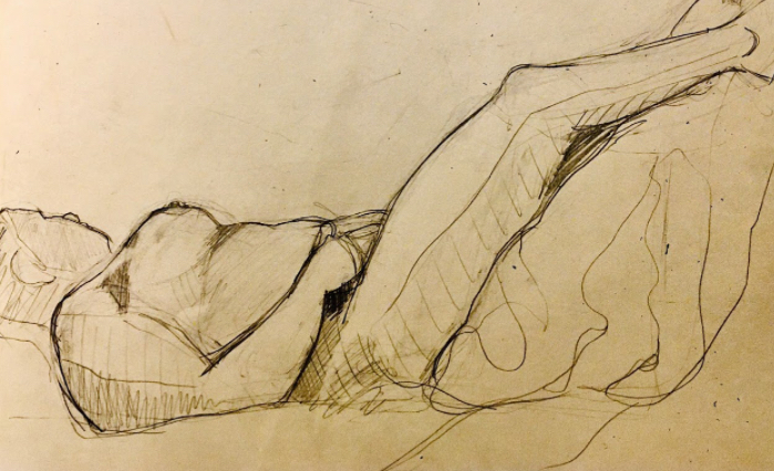 Sleeping Figure (quick study), graphite on paper, 18″ x 24″ 2018, $250