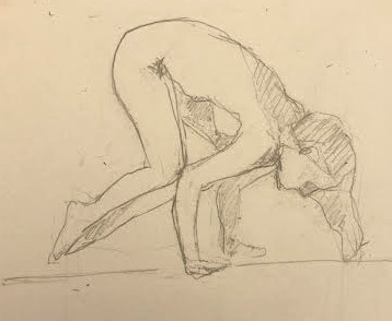Desert Handstand, pencil on paper, 12″ x 12″ 2021, Private collection of model