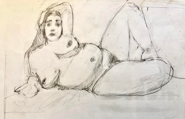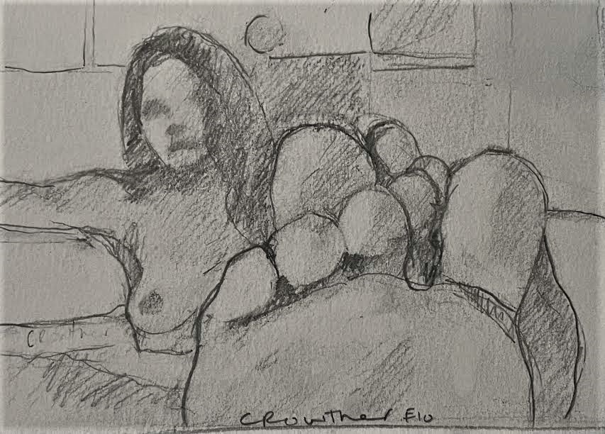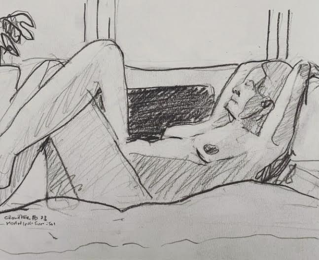 Reclining in the Sun: Copenhagen (sketch for larger painting), Graphite on paper, 9″ x 12″, 2023, $250