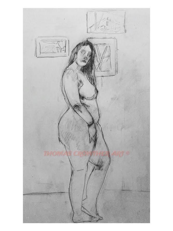 Spanish Muse Standing in Studio,, Graphite on paper, 18″ x 24, 2025, $250