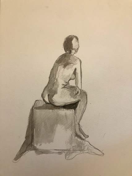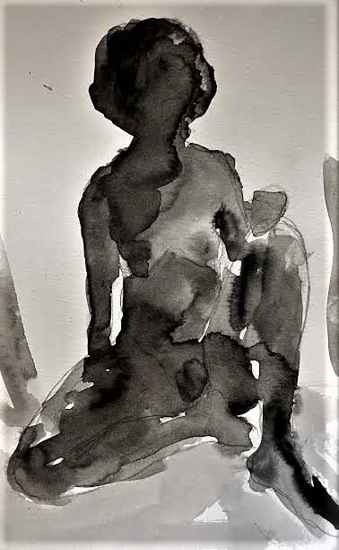 Seated Back Study on Block, Pencil and Ink wash on paper, 15″ x 11″ 2020, private collection