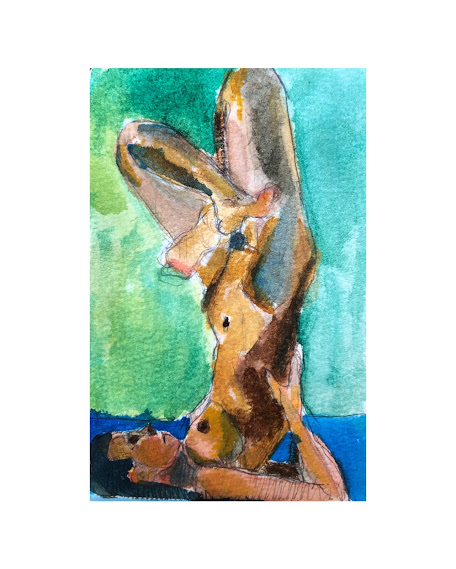 Twisting Seated Nude, Water colour on paper, 3.5″ x 5″, 2021 Private collection