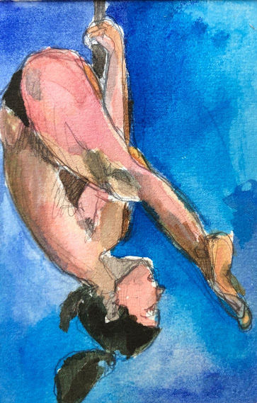 Upside down Hang, watercolour, 3.5″ x 5″, 2020, $50