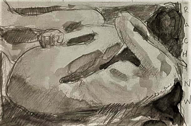 Rachel Contorted, ink and pencil on paper 12″ X 16″ 2022, private collection of model