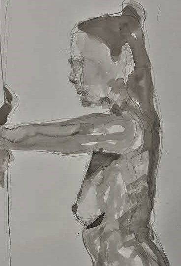 Standing Nude Leaning on Wall, ink and pencil on paper, 18″ x 24″ 2021 $250