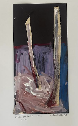 GA. Pines no. 1: Winter: mixed media on paper, 18″ x 24″ 2024, $250